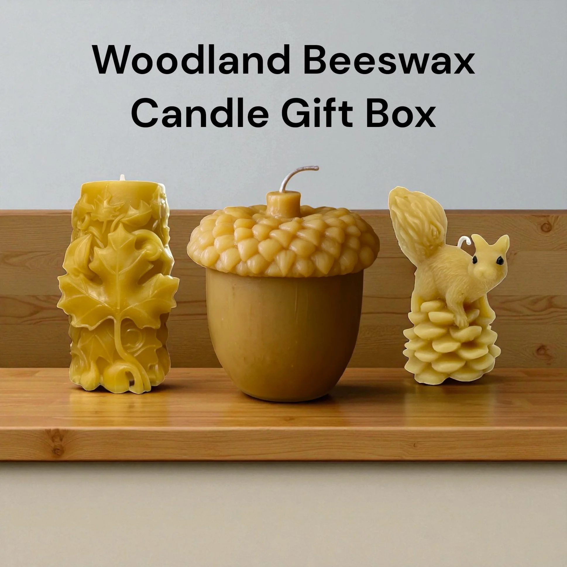 Woodland Beeswax Candle Gift Set-Tabitha Squirrel-Woodland Acorn & Leaf Forest Pillar